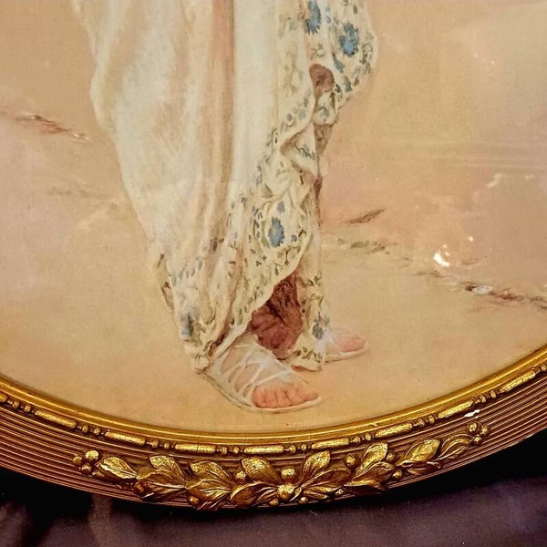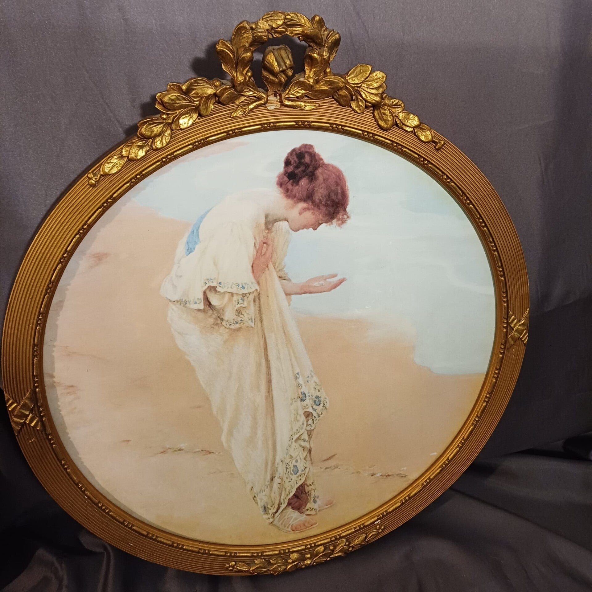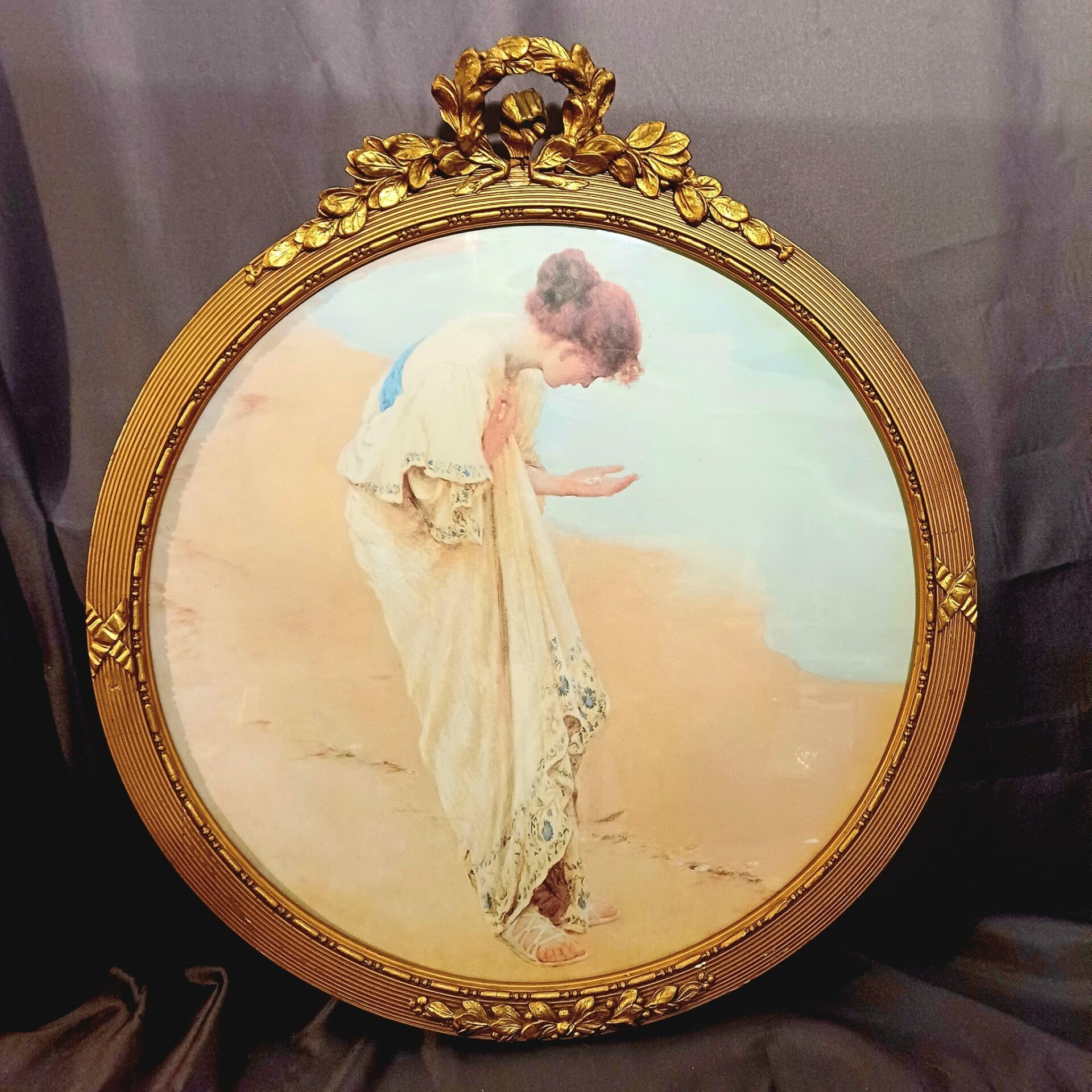 "The Sea Hath Its Pearls," by William Henry Margetson. 1897. Vintage 1950's print in its original ornate glassed circular frame. Frame measures H57cm, W51cm.