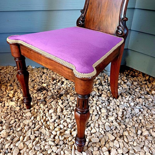 Antique Mahogany Hall Chair Reupholstered in Purple Velvet