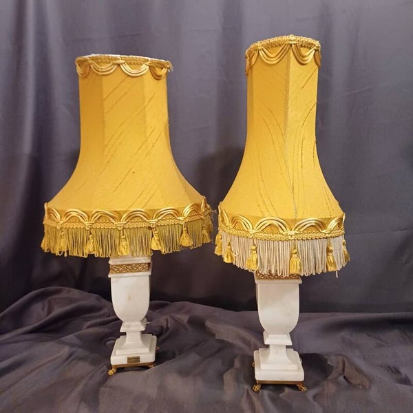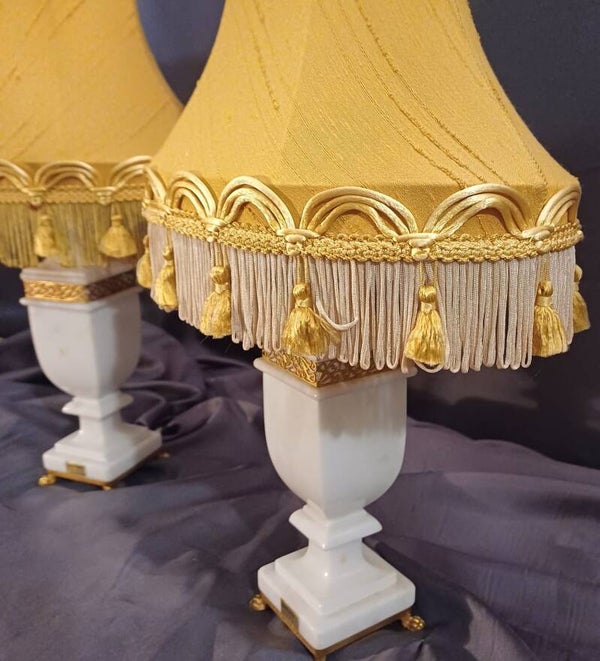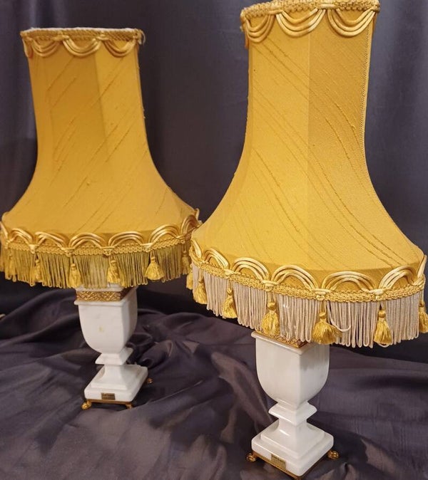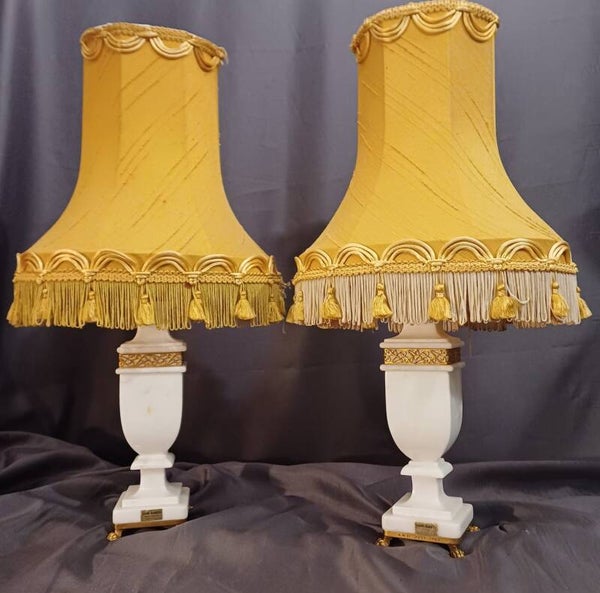 White Alabaster and Brass lamps